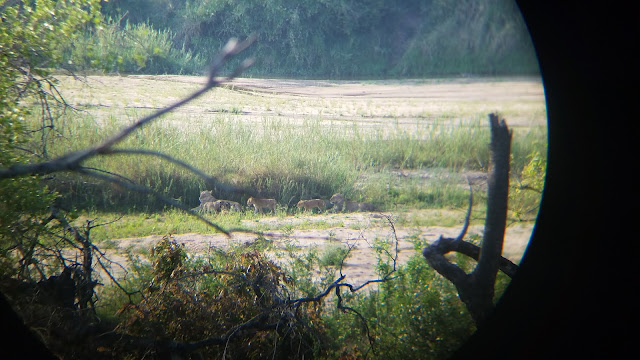 A couple of views of the lion pride through the binoculars.